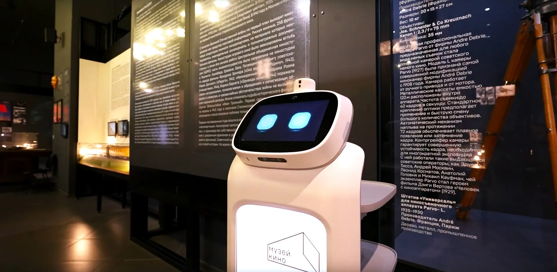 Аркаша расскажет о сокровищах «Лабиринта истории»: кинофонарях, праксиноскопе, раритетной кинотехнике, первом «Оскаре», монтажных экспериментах и других технологиях родом из прошлого. Робот одновременно говорит и демонстрирует видеоряд на встроенном экране, что помогает лучше воспринимать информацию. Аркаша пока не отвечает на вопросы посетителей во время экскурсии, но запоминает их и расширяет свой словарь. Помогает ему в работе сервис «Аватар», который вскоре позволит зрителям услышать экскурсию удаленно из любой точки нашей страны.