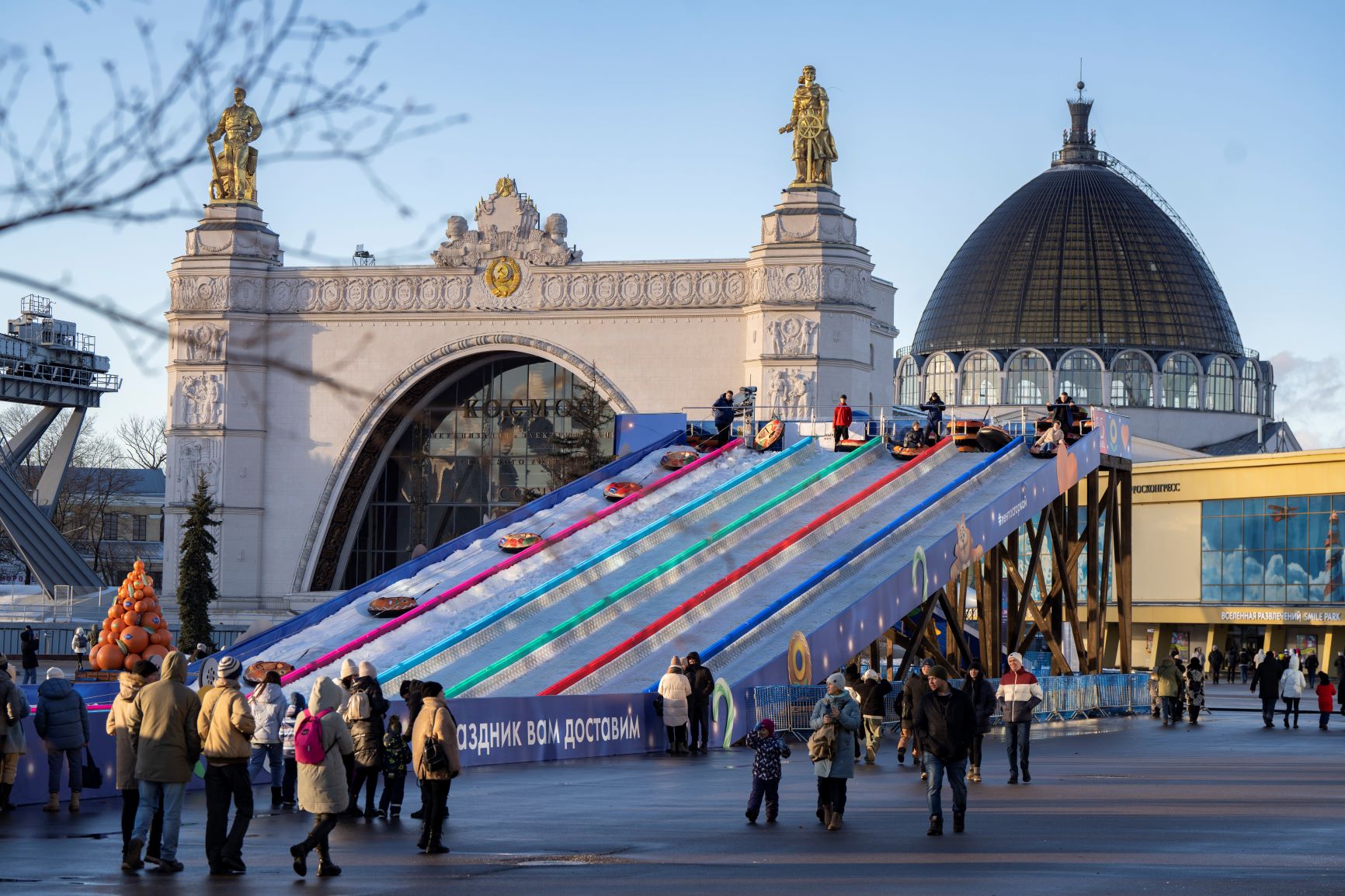 Кроме того, на площадке перед павильоном № 57 «Исторический парк «Россия — моя история» установлена 8-метровая тюбинговая горка «Сияние» длиной 80 метров с бугельным подъемником для тюбингов. Горка обработана специальным всепогодным покрытием, скатиться на тюбах можно всей семьей — одновременно работают пять спусков. Горка с прямым выкатом и подходит для катания детей от 3 лет. Перед спуском проводится инструктаж по технике безопасности. Режим работы: будние дни — с 11:00 до 22:00, выходные — с 10:00 до 23:00. Билеты продаются в кассе горки или на сайте.